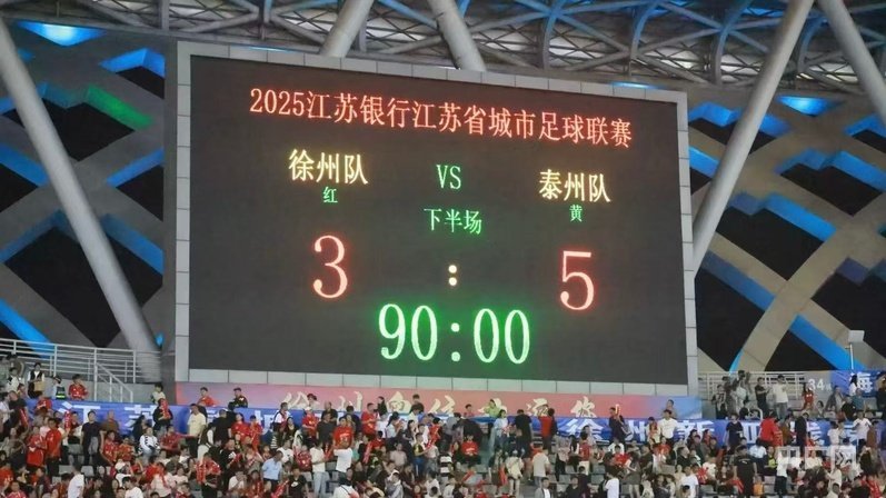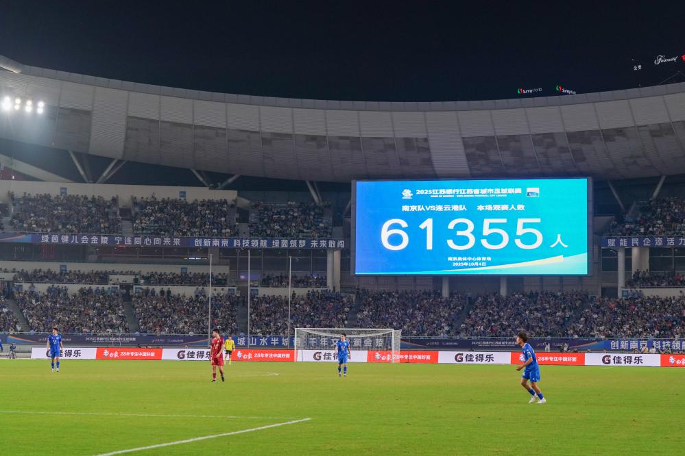 10月4日,2025江苏省城市足球联赛(“苏超”)四分之一决赛,共有61355名球迷到场观赛。新华社记者 李博 摄