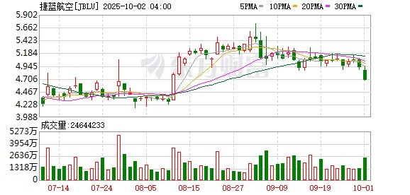 邮轮、社交媒体、航空服务跌幅居前,捷蓝航空跌超4%,联合大陆航空跌超3%。